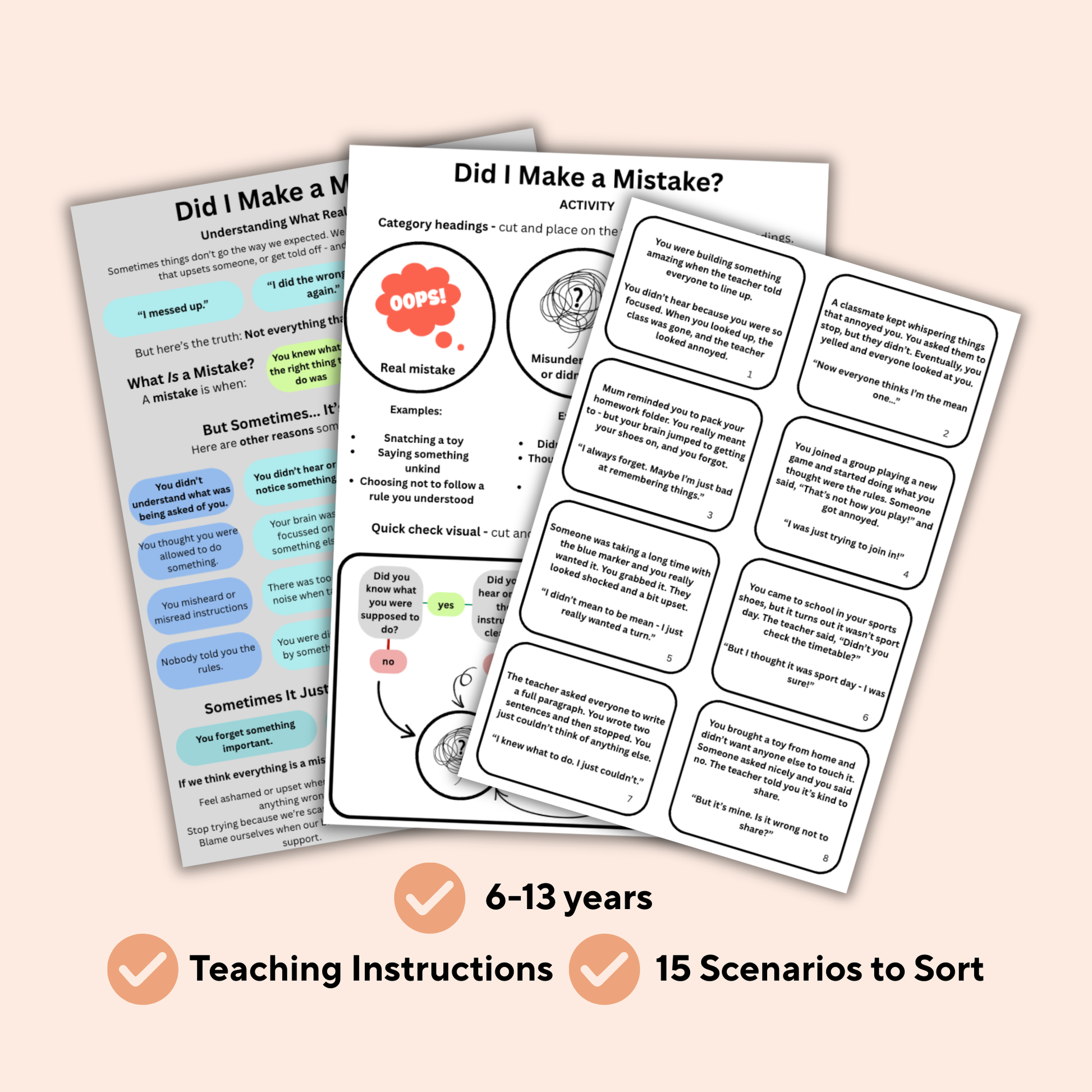 ✔️ Scenarios to help practice differentiating between accidents, misunderstandings, and true mistakes