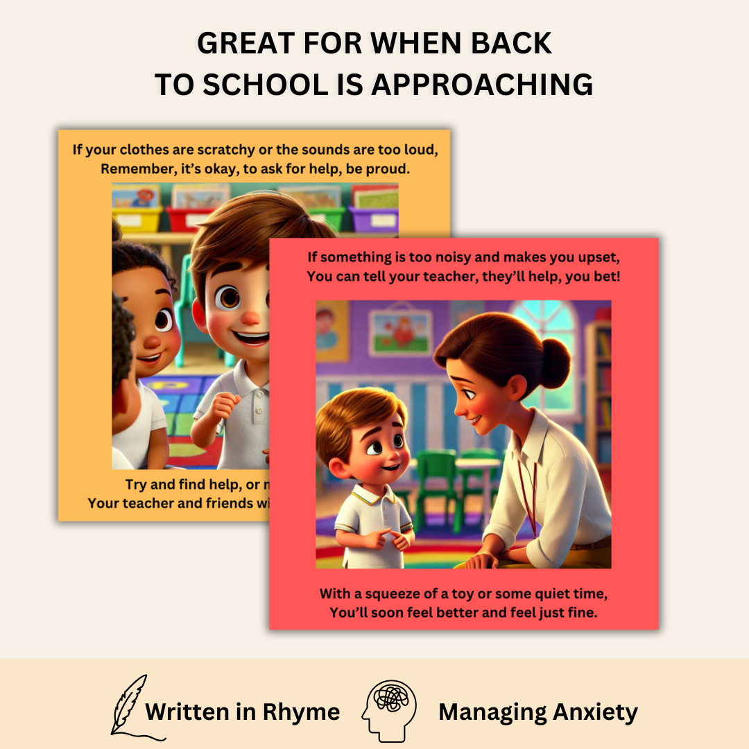 School can bring excitement, nerves, and a whole bunch of unknowns. This social story supports children in knowing what to expect during a school day - and, more importantly, what to do when they feel uncomfortable, unsure, or overwhelmed.